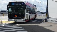 飛行機の離陸する風景を眺めたり、ショップでぶらぶらしているうちに、1時間が過ぎていました。そして、燃料電池バスのことを思い出しました。