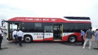 大阪舞洲の2022バステクフォーラムで展示のトヨタの燃料電池バス「SORA」