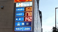 4月1日(金)の大阪市内にあるセルフのガソリンスタンド。 レギュラー168円、ハイオク178円、軽油142円。 ロシアのウクライナ侵攻も...